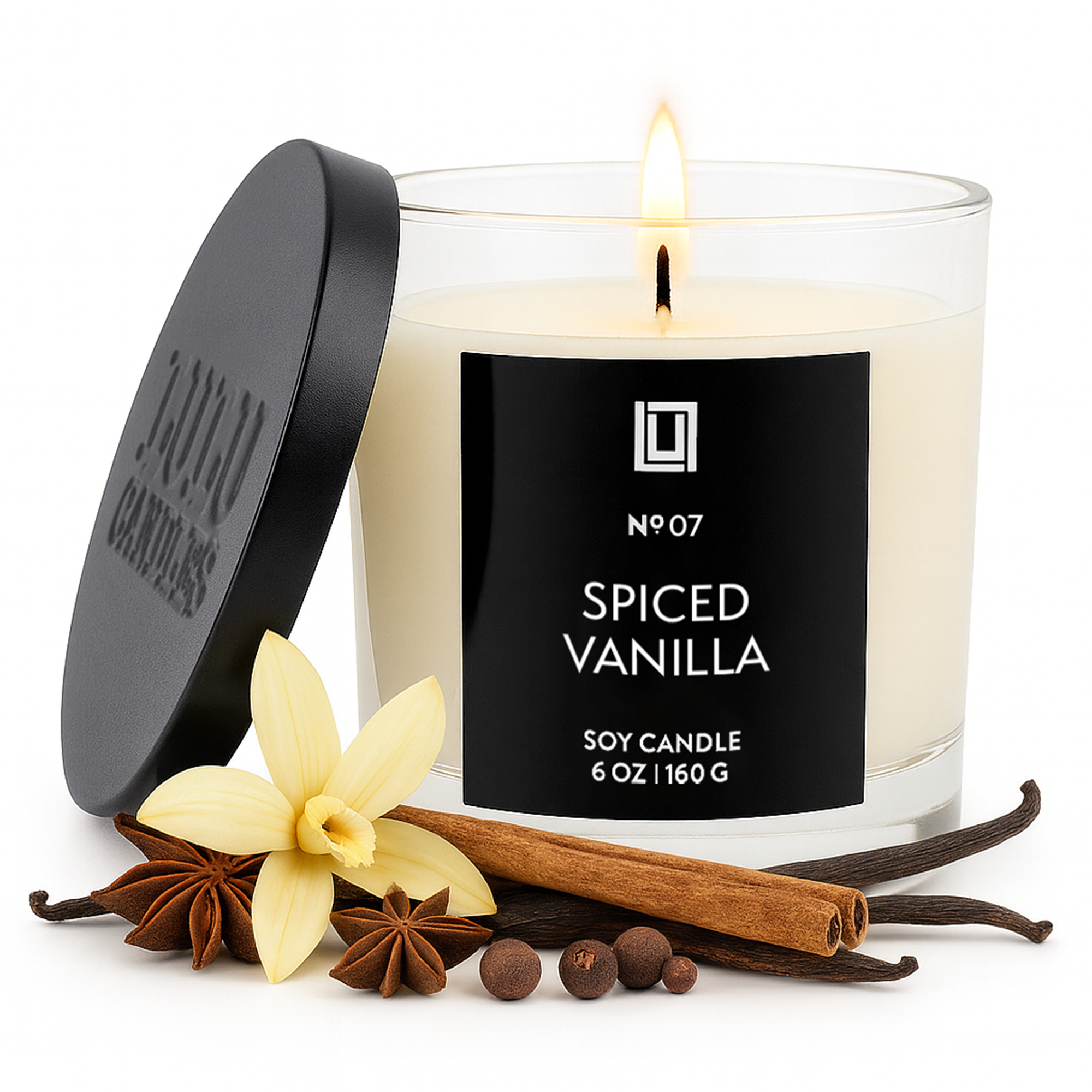 Spiced Vanilla | Luxury Scented Candle | 6 Oz. with Black Lid